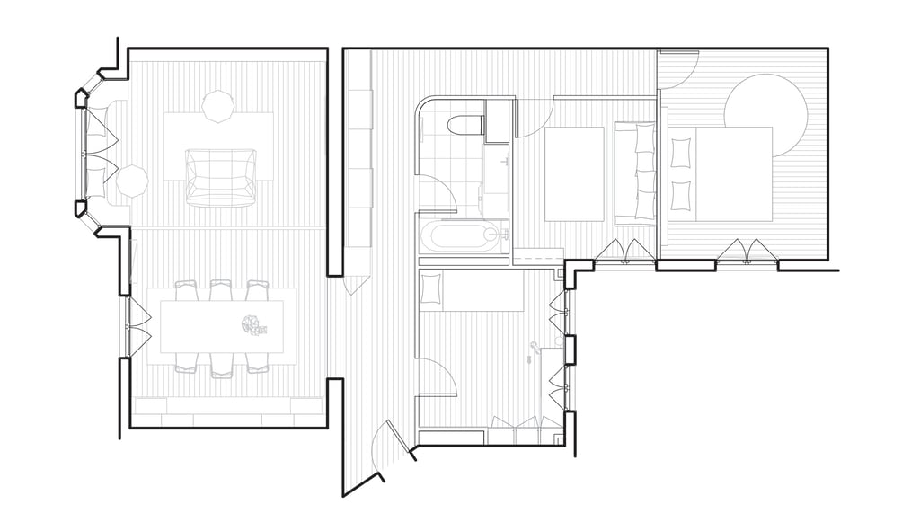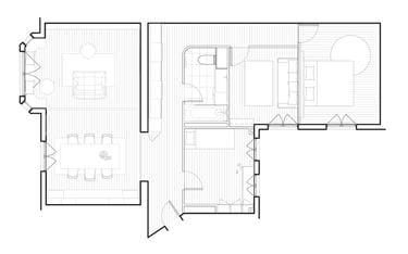 Pour que chaque membre dispose de son propre espace, une chambre supplémentaire a été aménagée, nécessitant la création de nouvelles cloisons ainsi que le déplacement des toilettes et de la cuisine. Cette transformation a été rendue possible grâce à l'installation d'un système de chauffage électrique plus performant et à la remise à neuf du réseau électrique.