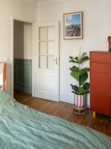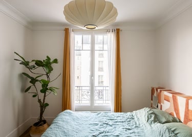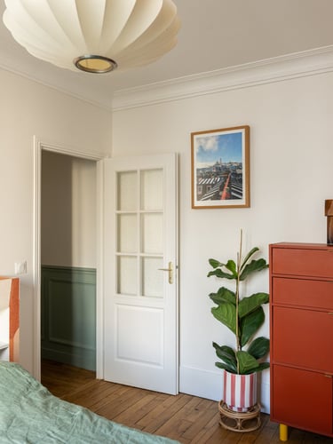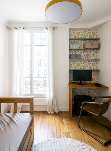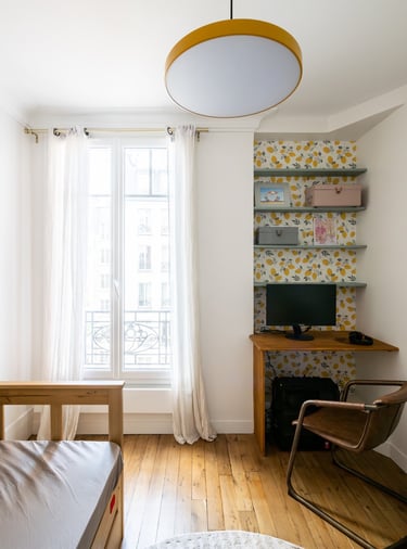 Cet appartement de 80 m², situé dans un immeuble des années 1930 à Montmartre, a bénéficié d'une rénovation complète pour retrouver son charme d'antan et accueillir une famille de quatre personnes.