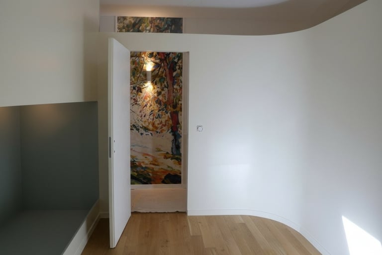 Grâce à l’emplacement du studio, nous avons pu agrandir sa surface à 16 m²en intégrant une partie du couloir et en ajoutant une fenêtre supplémentaire exposé est. Par le raccordement aux installations sanitaires de l’immeuble nous avons créé des vraies toilettes à l’intérieur de l’appartement.
