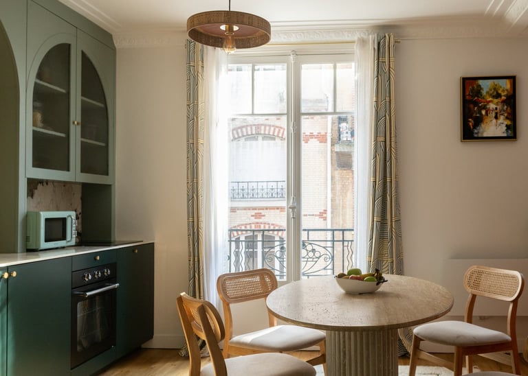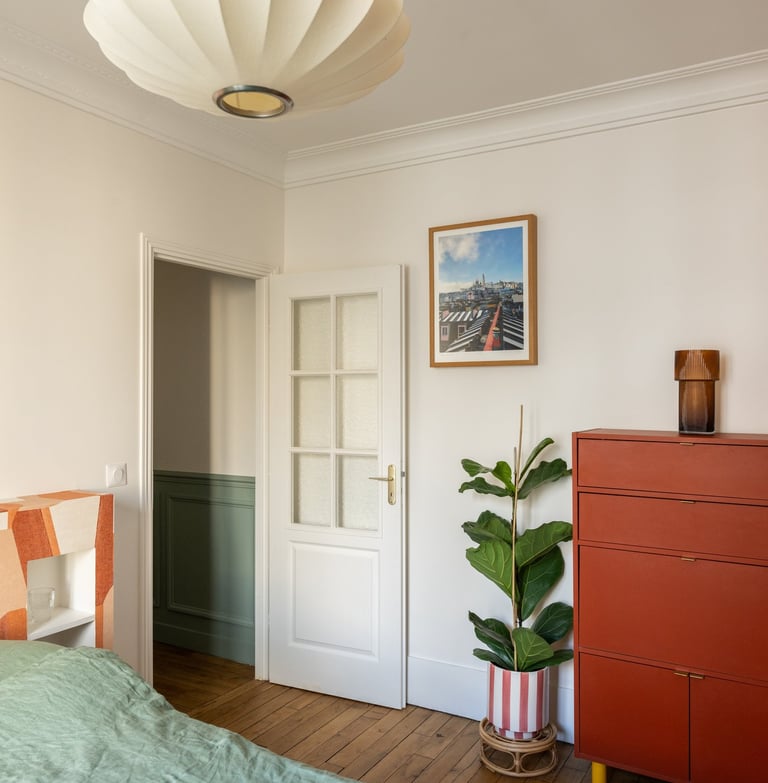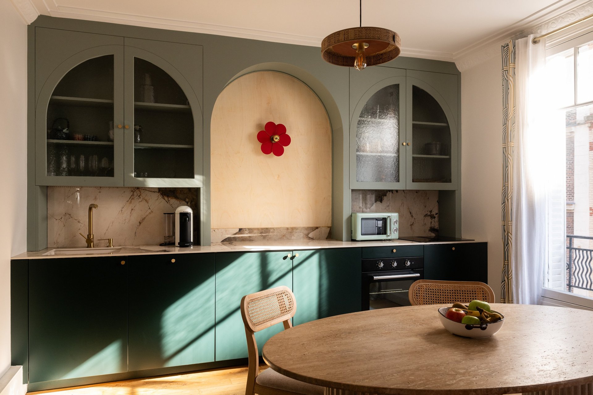 Cet appartement de 80 m², situé dans un immeuble des années 1930 à Montmartre, a bénéficié d'une rénovation complète pour retrouver son charme d'antan et accueillir une famille de quatre personnes.