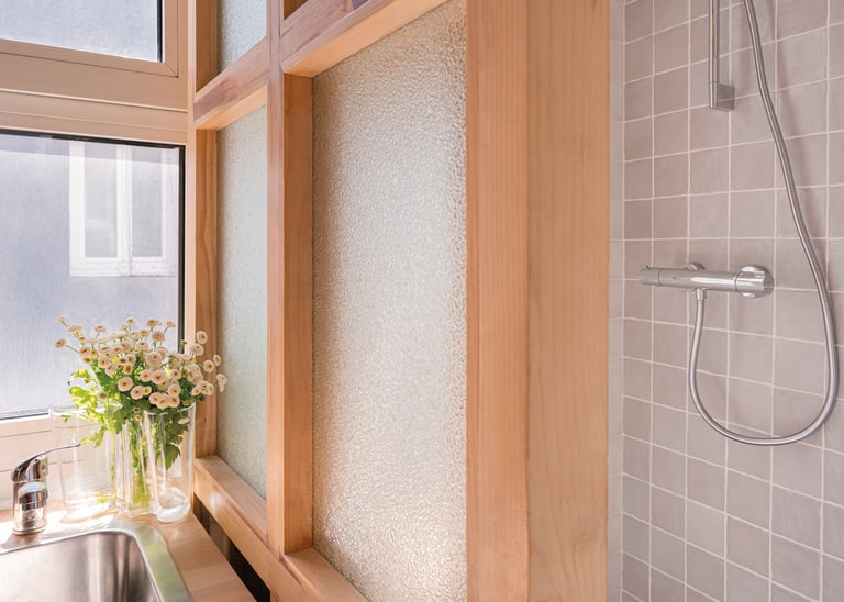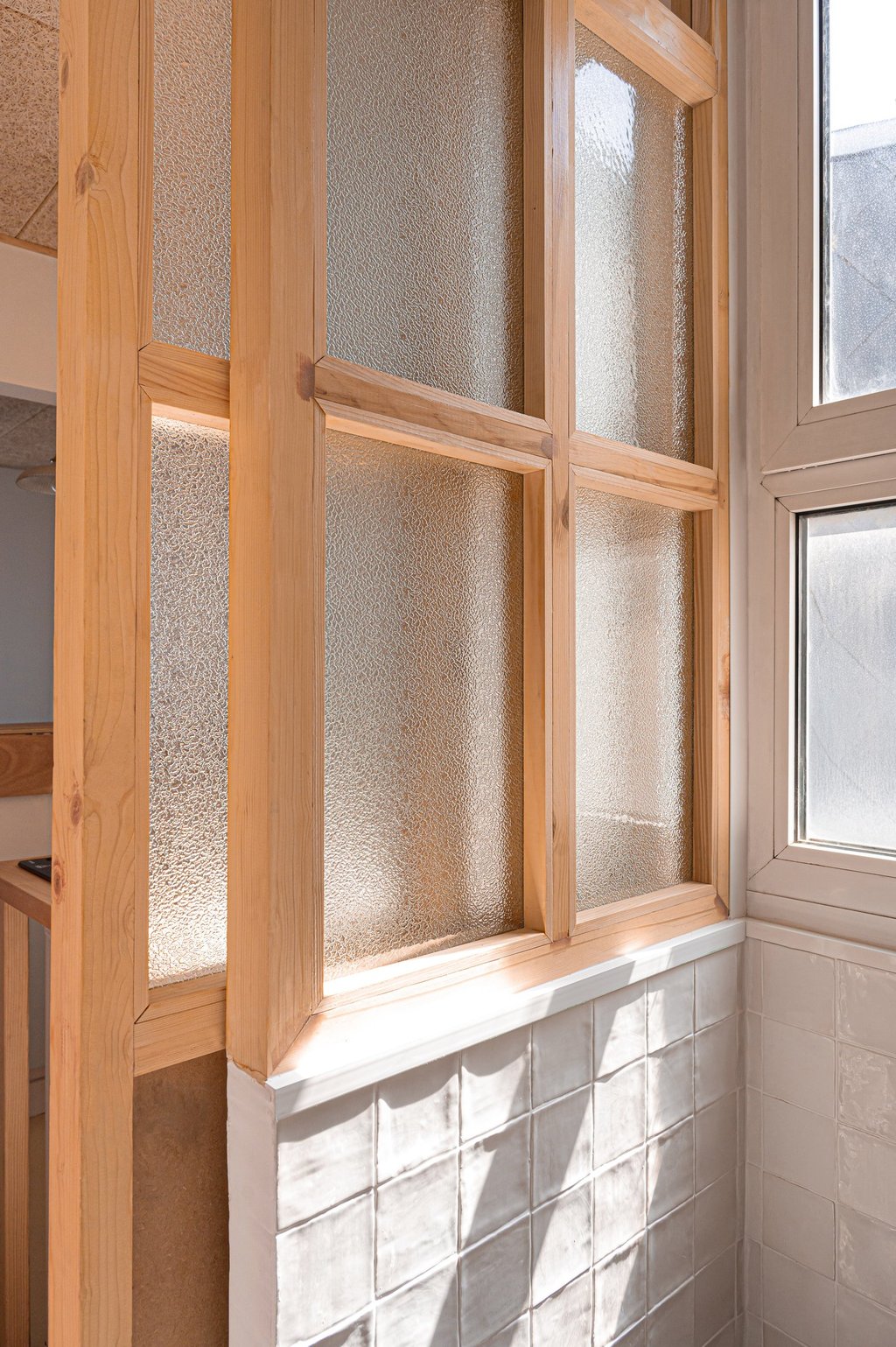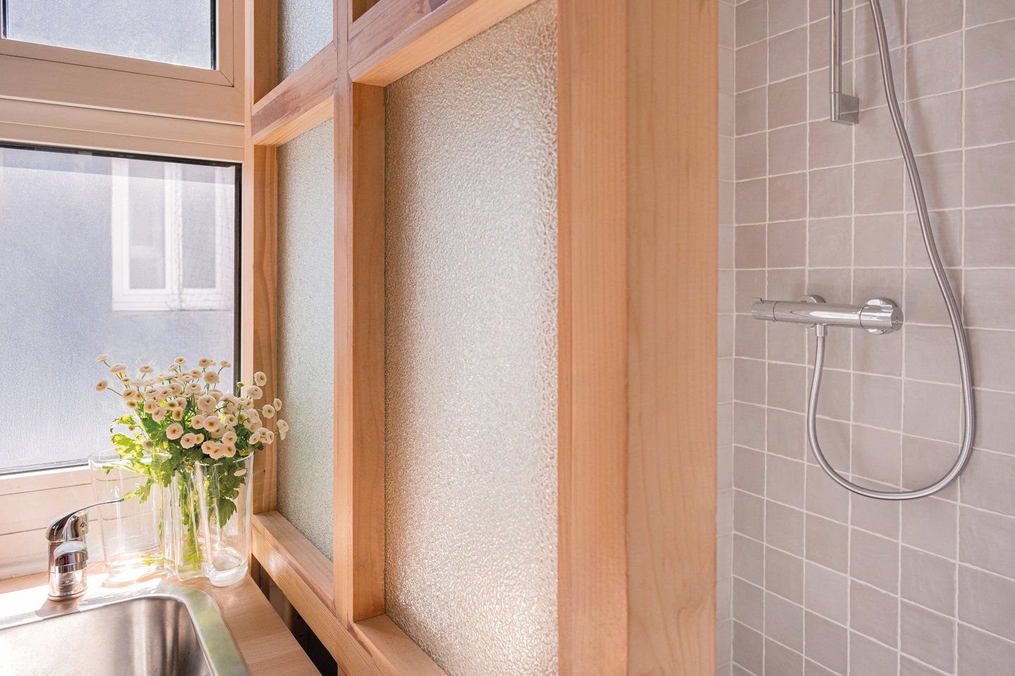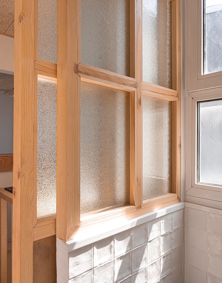 Grâce à l’emplacement du studio, nous avons pu agrandir sa surface à 16 m²en intégrant une partie du couloir et en ajoutant une fenêtre supplémentaire exposé est. Par le raccordement aux installations sanitaires de l’immeuble nous avons créé des vraies toilettes à l’intérieur de l’appartement.